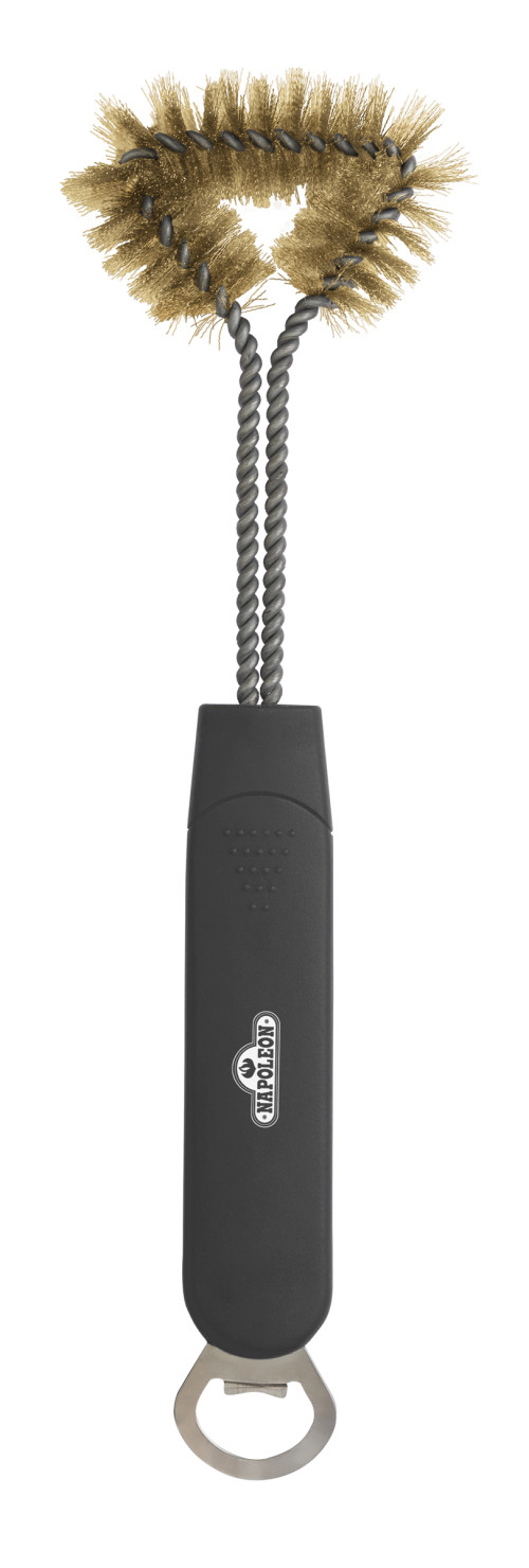 Die dreiseitige Napoleon® Grillbürste mit Messingborsten ist ideal für die Reinigung der Gussroste der TravelQ™-Grillmodelle geeignet (31 cm). Inklusive Flaschenöffner.