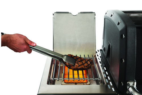 zweistufig höhenverstellbarer Edelstahl-Grillrost Aluminiumdruckguss-Gehäuse Keramikwabe 182 x 127 mm Zündsicherung durch Pilotflammensystem Fettauffangschale