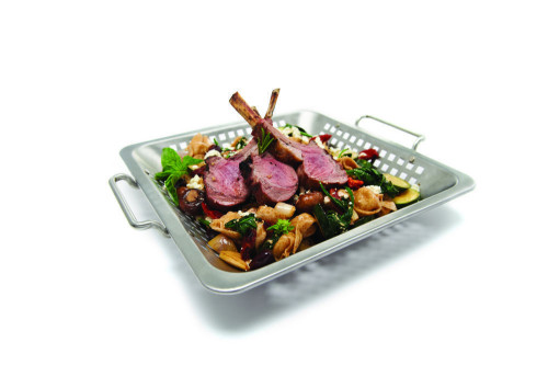 Der quadratische Grillwok mit seinem einzigartigem Lochdesign vereinigt Funktionalität und leichte Reinigungsmöglichkeit. Mit seiner Abmessung von 30,48 x 30,48 cm, hat er ein großes Fassungsvermögen für zahlreiche Gemüse- und Fleischgerichte.