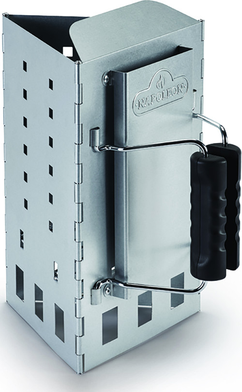 Napoleon® Anzündkamin für maximale Luftzirkulation und 30% schnelleres Anzünden. Die Holzkohle tritt durch das eckiges Design punktgenau aus. Ein Schutzschild bewahrt Ihre Hand beim Einfüllen vor Hitze.