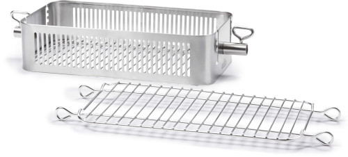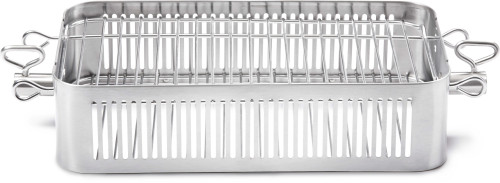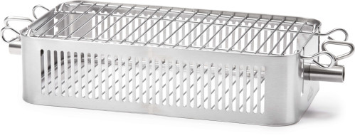 Dieser Drehspieß-Korb aus Edelstahl verfügt über ein 3-fach in der Höhe verstellbares Gitter zum Verschließen und wird mit zwei Feststellschrauben am Drehspieß montiert. Damit grillen Sie Fisch, Gemüse, Meeresfrüchte am Drehspieß
