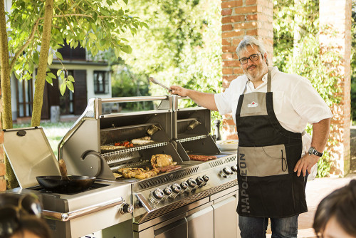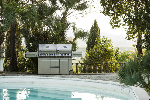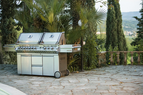 Die größere der beiden Grillflächen wartet mit vier Edelstahl-Brennern und einem Infrarot-Heckbrenner für Rotisserie-Gerichte auf – das Drehspieß-Set mit Motor ist selbstverständlich im Lieferumfang enthalten.