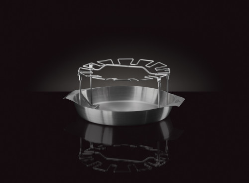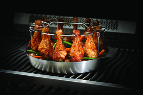 Napoleon® Edelstahlhalter für bis zu 12 Hähnchenkeulen mit praktischer Fettwanne, die auch als praktische Grillpfanne verwendet werden kann. Der Halter ist klappbar und lässt sich kompakt verstauen. Abmessungen aufgebaut: 34,5 cm x 14 cm x 29 cm: (B x H x T)