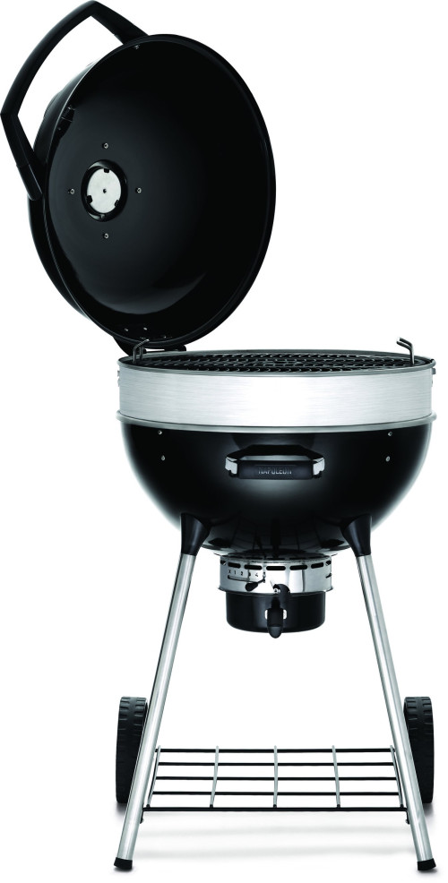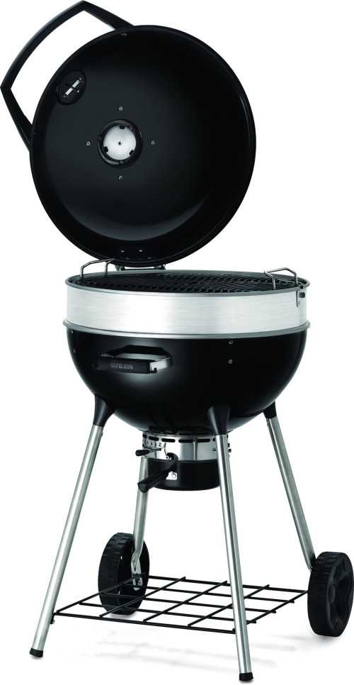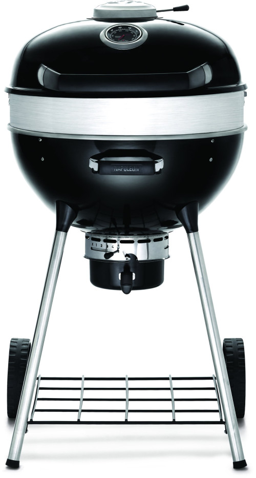 Napoleons flexibler Kugelgrill PRO22K-LEG (57 cm) ist ideal für Holzkohle-Liebhaber. Zum unkomplizierten Grillen, langsamen Garen oder Smoken mit Ihren Lieblings-Räucherchips. Die Grillroste aus Gusseisen können für komfortables Grillen in drei verschiedenen Höhen eingestellt werden. Die Roste sind klappbar, sodass das Nachlegen von Holzkohle, das Nachfüllen von der Wasserschale und das Einlegen von Räucherchips und -chunks erleichtert wird. Beim Grillen mit Holzkohle ist es wichtig, die Wärme über den Luftstrom zu regulieren. Die Entlüftungsöffnung schützt das Grillgut vor Wind und Regen und gewährleistet eine präzise Steuerung der Temperatur. Das Vortex-Wärme-Managementsystem verbessert die Wärmeübertragung innerhalb des Grills, was für ein besseres Anbraten und Smoken sowie eine effizientere Nutzung des Brennstoffs sorgt. Der Erweiterungsring aus Edelstahl ist für Drehspieß-Gerichte geeignet und verfügt über Öffnungen, die die Aussparungen für den Spieß abdecken. Integrierte Öffnungen für Temperaturfühler sorgen zudem dafür, dass Sie den Garvorgang genau steuern können. Die überaus stabile, porzellanbeschichtete Stahlkonstruktion ist gegen Verschleiß gewappnet. Durch den klappbaren Deckel haben Sie Zugriff auf die gesamte Grillfläche.