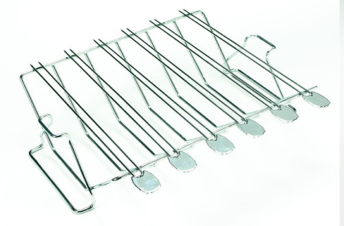 Perfekt für die Zubereitung von großen Braten, Spareribs oder auch Spieße. Mehr Funktionalität kann ein einzelnes Zubehör nicht bieten. Das Set besteht aus dem Gestell und 6 Doppelspießen. Maße ca. 38 x 28 x 7,5 cm