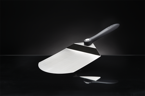 Napoleon® PRO Pizza-Heber mit großer Edelstahlfläche und einklappbarem, schwarzem Kunststoffgriff (31,5 cm x 30 cm).
