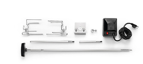 Napoleon® Drehspieß-Set in Heavy Duty Ausführung: Mit zwei Edelstahl-Fleischklammern, Edelstahl-Drehspieß (vierkantig) und Motor mit schwarzem Kunststoffgehäuse. Passend für Rogue® Serie