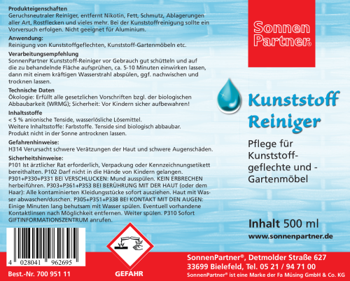 SonnenPartner Kunststoff-Reiniger vor Gebrauch gut schütteln und auf