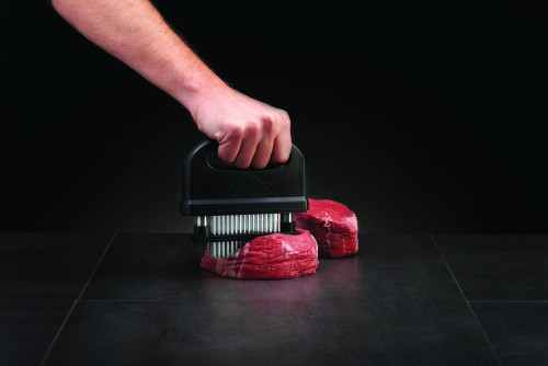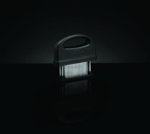 Scharfe, widerstandsfähige Klingen aus Edelstahl schneiden in die feste Struktur des Fleisches feine Taschen, damit verringert sich die Grillzeit um ca. 40%, zudem gelingt es somit die Fleischsäfte zu behalten, fördert ein gleichmäßiges Garen und macht das Fleisch zarter.