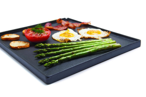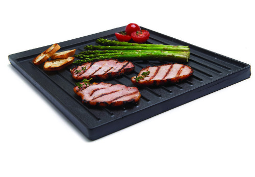 Die gusseisernen Backplatten sind beidseitig verwendbar. Sie verfügen über eine glatte und eine geriffelte Seite, ideal für Fleisch, Fisch und Gemüse. Passend für die Grillgeräte Royal und Monarch Serie
