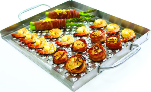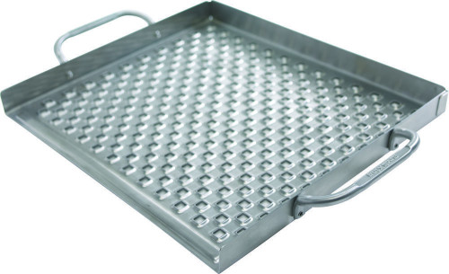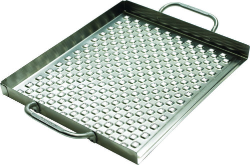 Gefertigt aus 1,2 mm dickem Edelstahl ist dieser Topper ein wirklich professionelles Zubehör für Ihren Grill. Das übergroße Design bietet Ihnen sehr viel Grillfläche auf dem Topper und mit den gefalzten Kanten bleibt das Grillgut sicher auf dem Topper. Die 10 mm dicken Edelstahl Griffe gewährleisten ein komfortables Handling an und auf Ihrem BBQ. Maße ca. 39,3 x 33 cm.