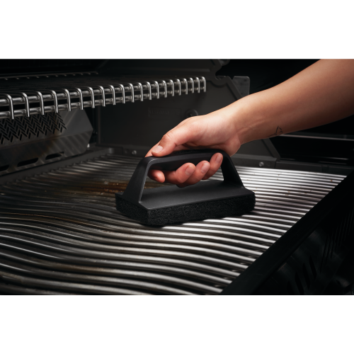 Scheuerschwamm in neuem Design mit praktischem Griff für ideale Handhabung und Reinigung der Grillkammer.