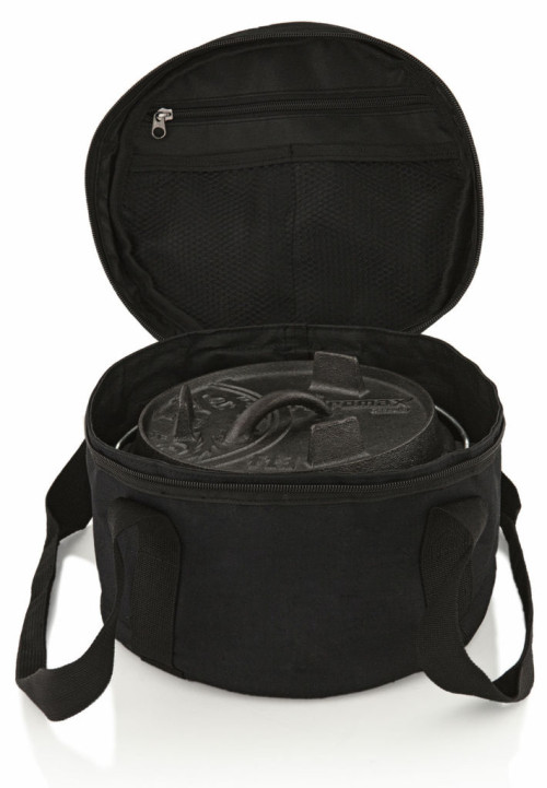 Die originale Petromax Feuertopf-Tasche ist eine hervorragende Transport- und Aufbewahrungsmöglichkeit für den Petromax Feuertopf. Mit dieser Tasche erhält der Feuertopf eine sichere Lagermöglichkeit und lässt sich einfach zum Camping, zu Freunden oder in den Urlaub mitnehmen.Erstklassige Stabilität dank hochwertiger VerarbeitungDas hochwertige Ripstop-Gewebe macht die Tasche besonders belastbar und reißfest. Optimaler Tragekomfort wird durch die doppelt genähten Tragegriffe garantiert. Um höchstmögliche Stabilität zu gewährleisten, ist der Taschenboden zweifach verstärkt. Durch eine in das Gewebe eingelassene Verstärkung und einen herausnehmbaren Einsatz bietet die Tasche dem Petromax Feuertopf erstklassigen Halt. Der herausnehmbare Einsatz kann bei Bedarf mit einem feuchten Tuch abgewaschen werden.Extra Stauraum für Zubehör im DeckelInnenseitig beherbergt der Taschendeckel eine geräumige Reißverschlusstasche sowie zwei Netzeinschubtaschen. So können praktische Zubehör-Teile wie z. B. der Petromax Zunder, der Mini- oder der Profi-Gasbrenner einfach verstaut und mitgenommen werden. Der Taschendeckel ist mit dem traditionellen Petromax-Logo bestickt, das seit jeher für exzellente Qualität steht und die Petromax Feuertopf-Tasche zu einem eleganten und stilechten Begleiter macht.